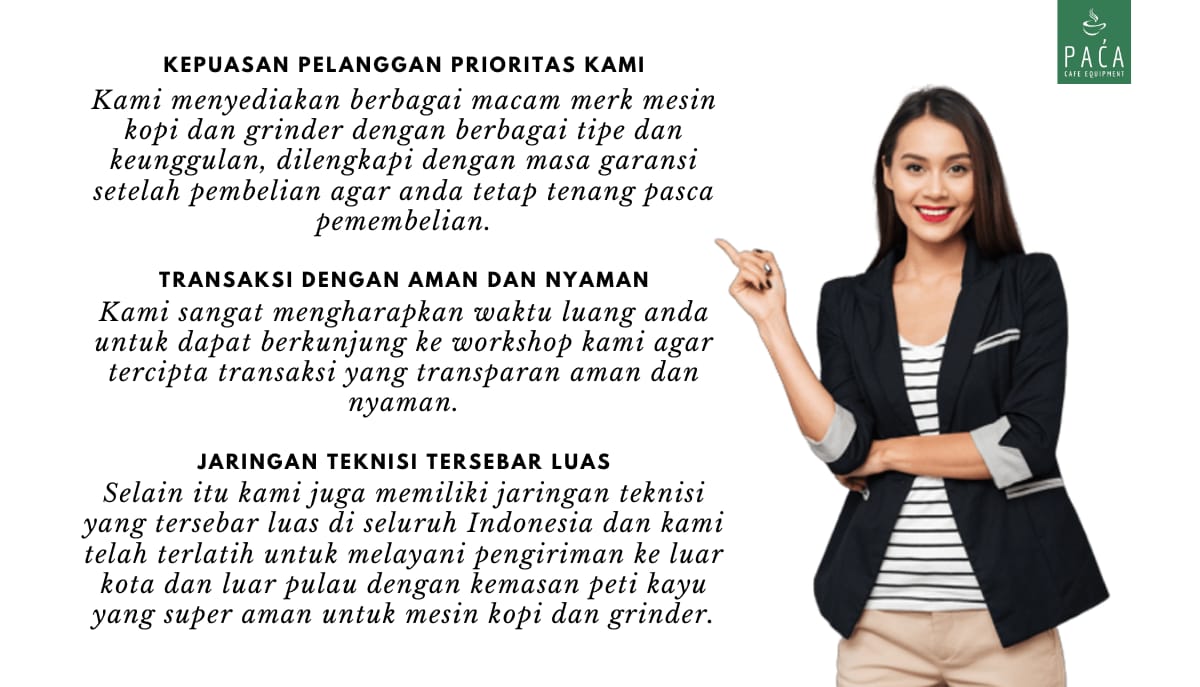 Kami menjual berbagai macam merk mesin kopi dan grinder bekas terjamin kualitas nya dengan harga terjangkau dan kami melayani pengiriman ke seluruh Indonesia dengan jaringan teknisi dari Sabang sampai Merauke